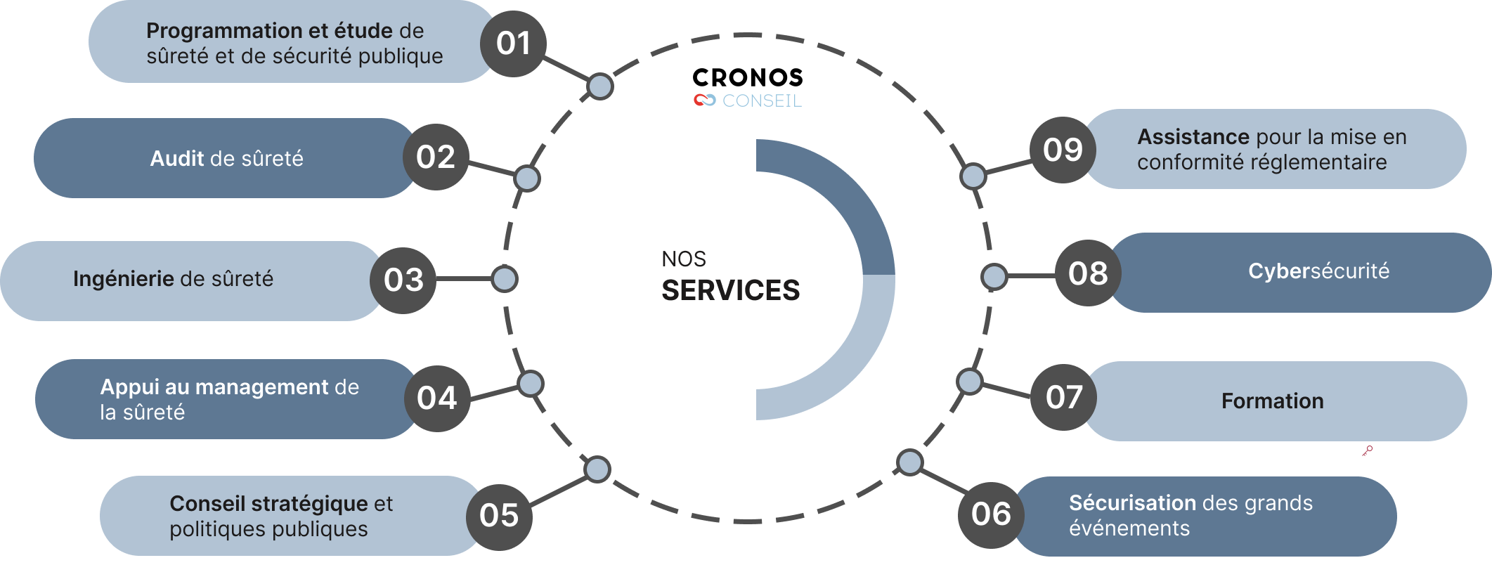 Cronos International is a consultancy and engineering company specializing in security. Our areas of expertise include crime prevention, critical infrastructure protection, counter-terrorism strategies, the safety and management of public spaces (including crowd control), corporate security, and urban safety.